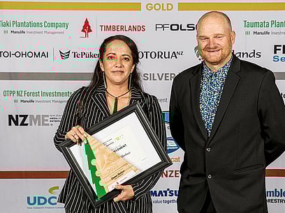 Mereana Tobenhouse from Fast Harvesting was honoured as the Female in Forestry Award winner. She started in logging as an apprentice in 2001, working in skid crosscutting and quality control. Since those early days, she has progressed into operating skidders, haulers and mechanised processing machines, with a keen focus on health and safety.